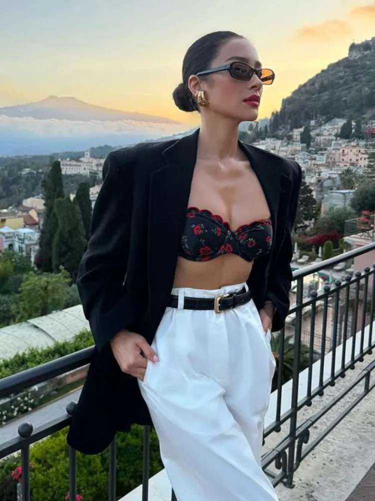 Display summer-ready flair with cropped tops, bralettes, or fitted tanks matched with high-waisted denim or skirts. This Summer Outfit Inspiration is perfect for keeping cool and fashionable. Enhance with layered jewelry and striking sunglasses to finalize the stylish, warm-weather ensemble.