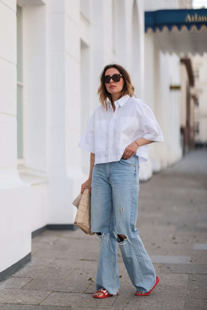Introduce a striking touch to your Summer Outfit Inspirations with a flamboyant red dress, a stylish top, or bold accessories. Whether it’s a flowing sundress or red strappy heels matched with neutrals, this look emanates confidence and vibrancy. Ideal for date nights or getaways, a splash of red elevates any summertime ensemble effortlessly.