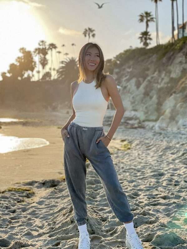 Sweatpants are essential for a cute and cozy loungewear outfit, delivering warmth and comfort. Selecting a fitted top or cropped hoodie contrasts well with the loose fit of the pants. This look is perfect for relaxing at home or stepping out in a chic, comfortable manner.