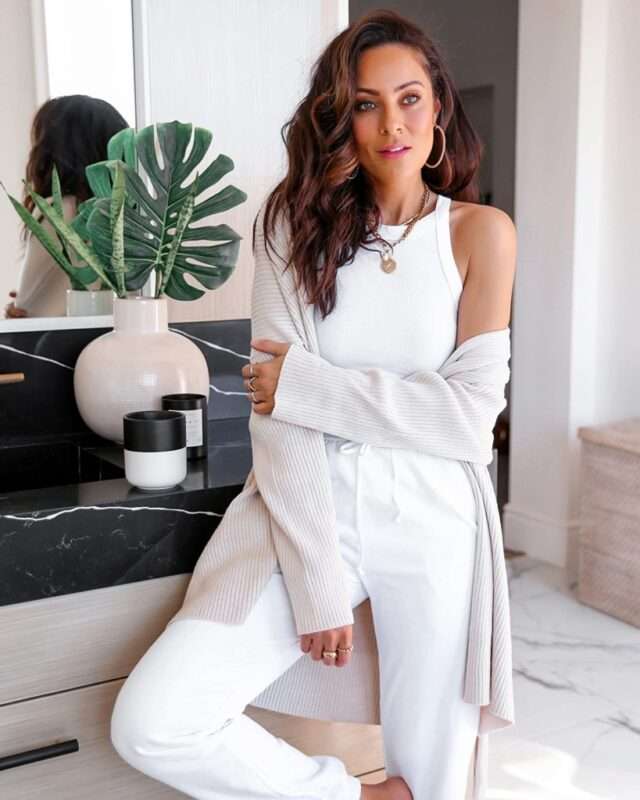 A chic white loungewear outfit radiates a fresh and refined aesthetic, perfect for casual-chic styling. Whether it’s a coordinated set or a combination of comfortable textures, white offers a sleek and graceful touch. Pairing with neutral accessories or sleek sneakers rounds out the minimal yet elegant look.