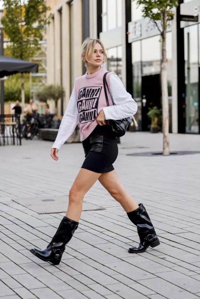 The heftier mini skirt is a daring, enjoyable option for casual winter outfits. Combined with thick tights, a warm sweater, and knee-high boots, this appearance establishes an ideal equilibrium of style and warmth. A structured coat on top ties the entire look together for a chic winter ensemble.