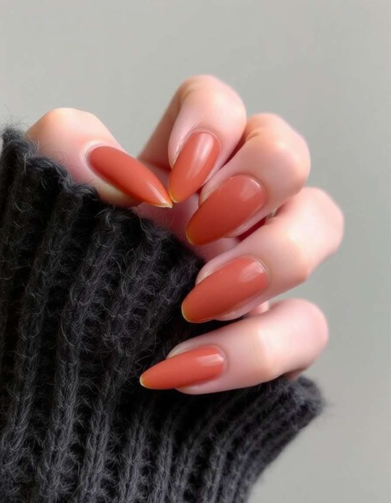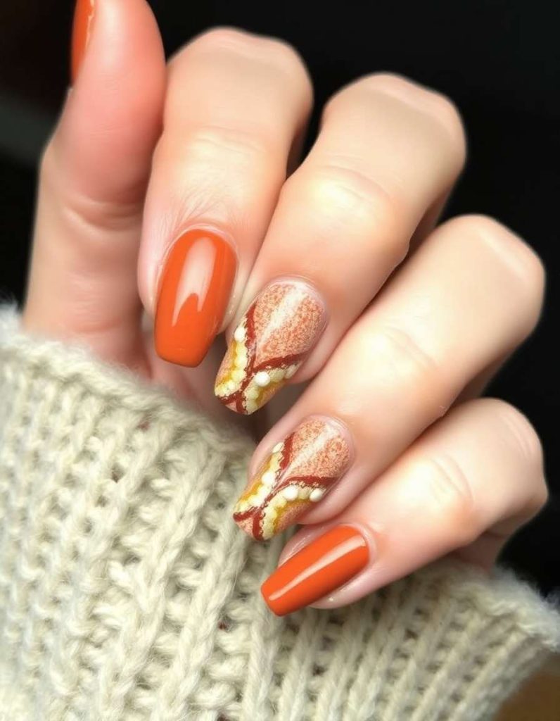 Boho nails painted in warm terracotta shades exhibit textured designs that convey an earthy, rugged feel. This style is ideal for those who appreciate rich, natural tones and boho-inspired textures that evoke a sense of grounded beauty.