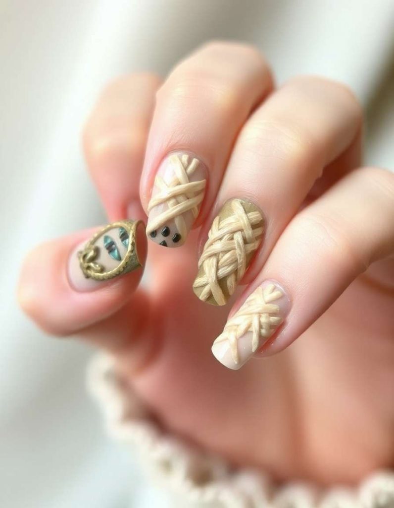 Boho nails with woven braid motifs deliver a one-of-a-kind, textured effect. The complex patterns create a boho-chic aura that is both artistic and fashionable, perfect for individuals who appreciate details that reflect the essence of handcrafted artistry.