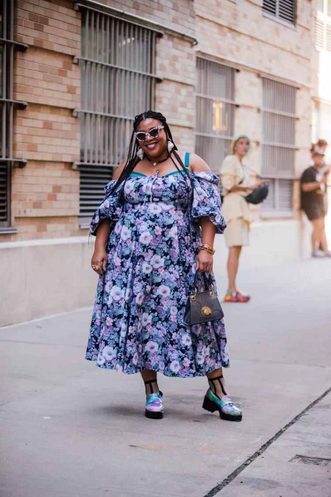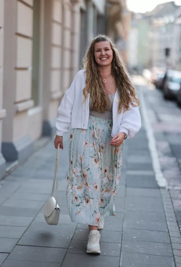 A midi sundress acts as a reliable choice for plus size summer outfits, delivering a classic and feminine figure. Combine it with a chic rattan bag for a vacation-ready look. Choose lightweight materials like cotton or linen and finalize the outfit with espadrilles or slip-on sandals.