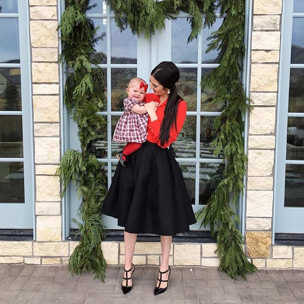 Red and black Christmas outfits produce a dramatic contrast that’s both festive and fashionable. A red dress with black details or a black outfit accented with red is ideal for those desiring a daring yet stylish holiday appearance. This timeless pairing will make you prominent at any Christmas celebration.