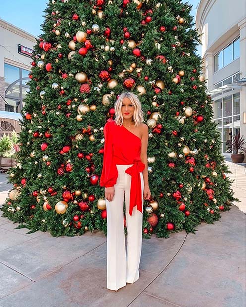 Snowy white Christmas outfits capture the enchantment of the season. A white sweater dress or faux fur wrap exudes sophistication and winter charm, perfect for those seeking to craft a tranquil and refined holiday appearance. Whether you’re attending a family get-together or a formal event, snowy white is a stylish and festive option.