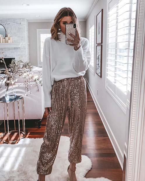 A sequin jumpsuit with long sleeves is a daring and glamorous selection for Christmas outfits. The shimmering sequins reflect the light, crafting a dazzling appearance perfect for any festive affair. Whether you’re attending a Christmas dinner or a celebration, this outfit provides both style and comfort for a memorable holiday look.