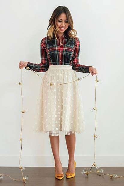 Festive plaid attires are a holiday staple, perfect for crafting a cozy and cheerful Christmas appearance. A plaid skirt, dress, or blouse adds a traditional flair to your holiday getups, ideal for family dinners or casual gatherings. Plaid remains always stylish and brings the festive spirit alive.