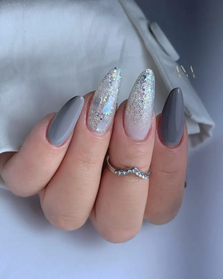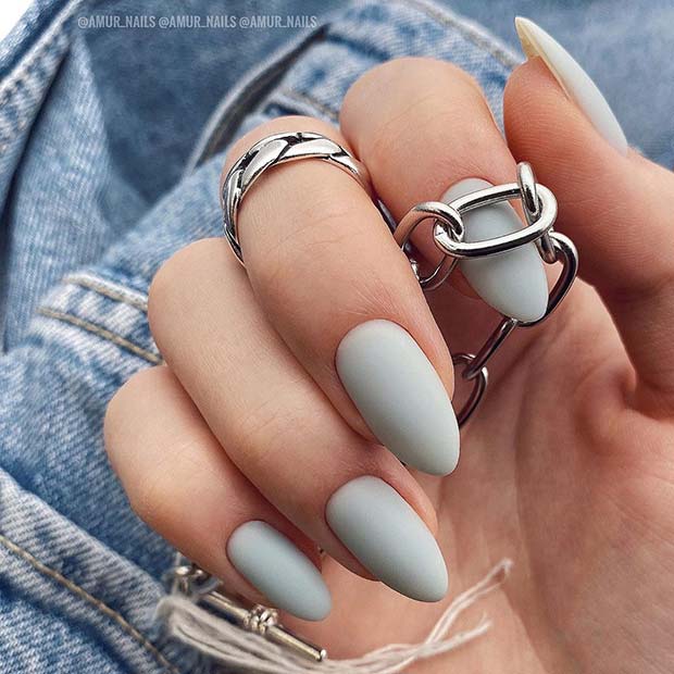 20. Matte Grey Almond Acrylic Nails