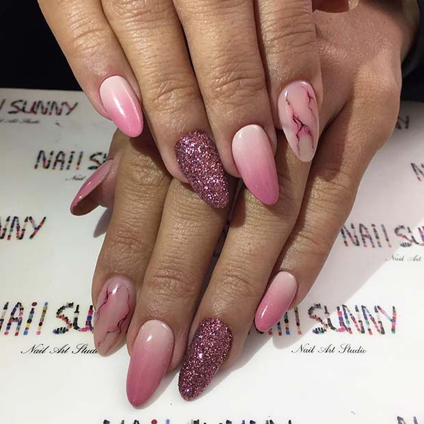 22. Sparkly Marble and Ombre Mani
