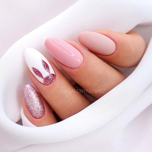 24. Adorable Pink Bunny Nail Art