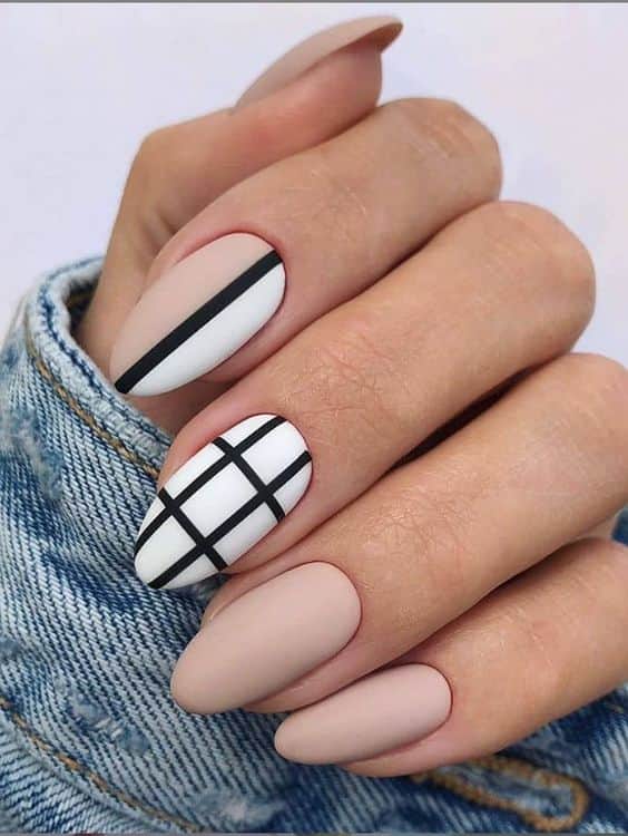 4. Almond Nails with Check