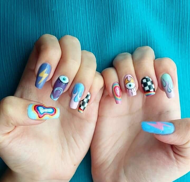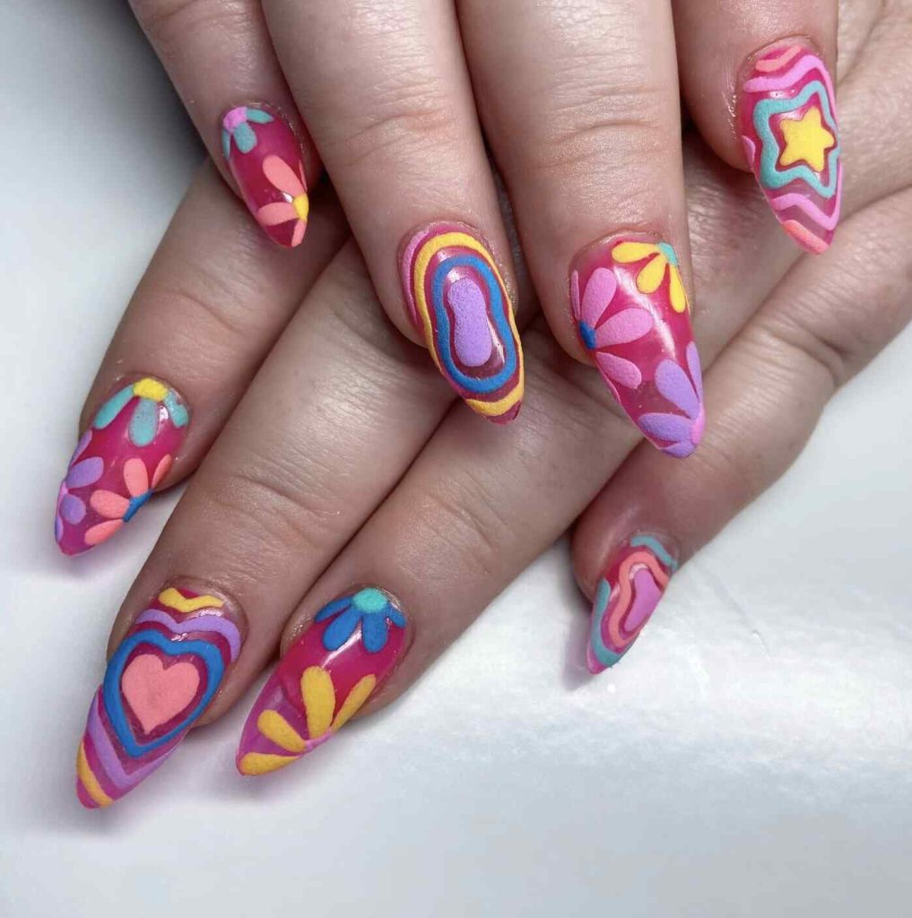 11. Barbie-Inspired Hippie Nail Art Styles