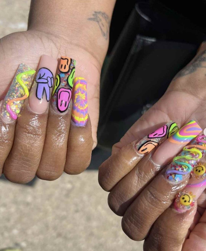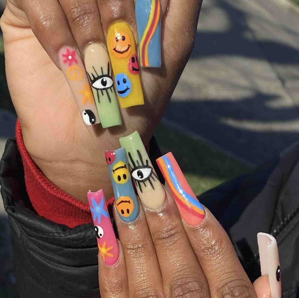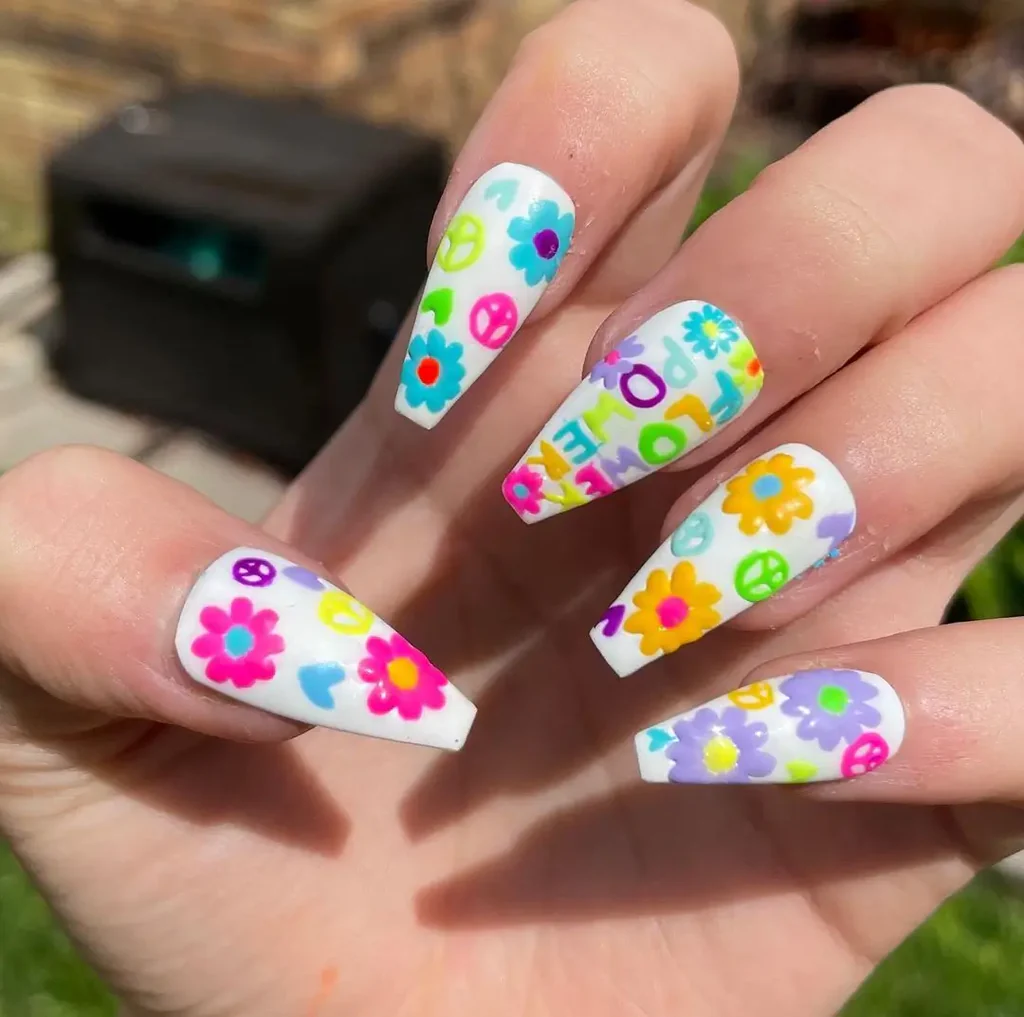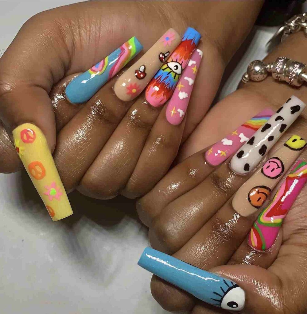 13. Hippie-Themed Acrylic Nails