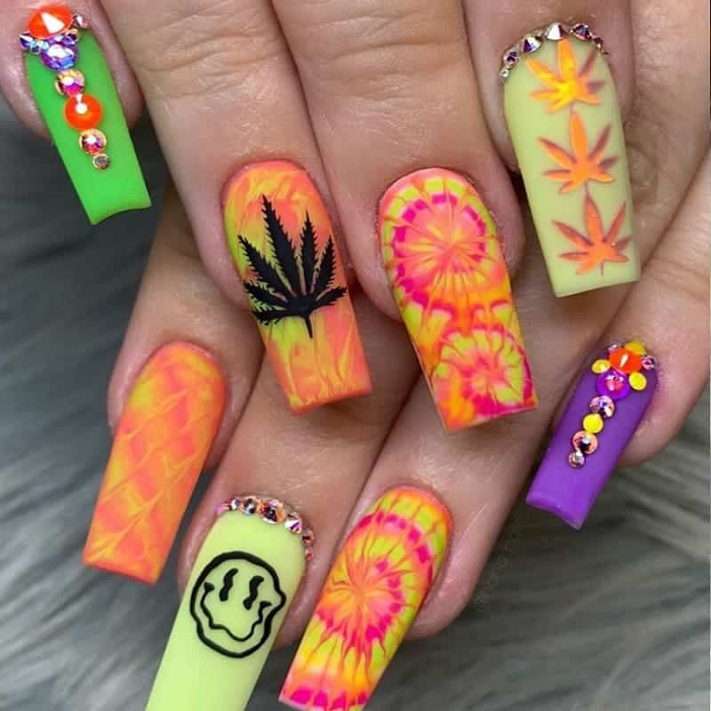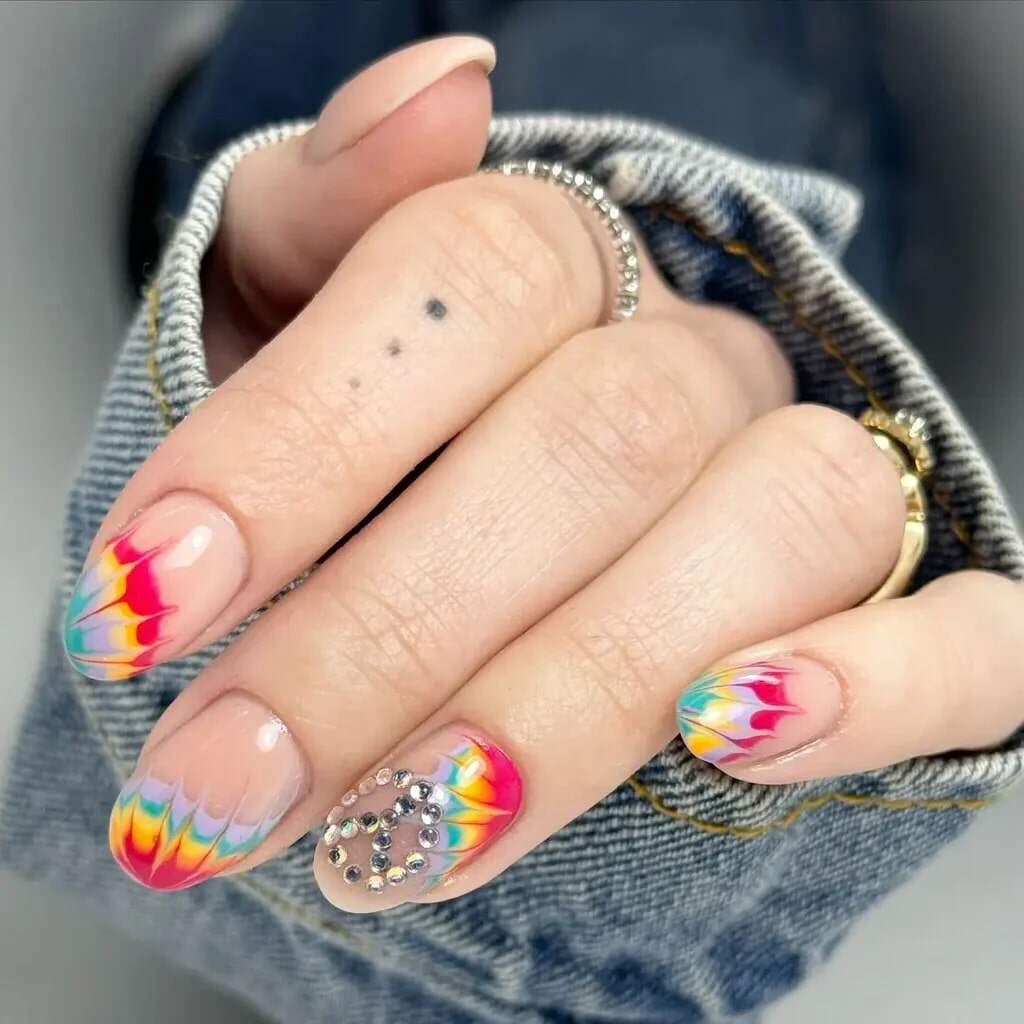 22. Tie-dye hippie nail art