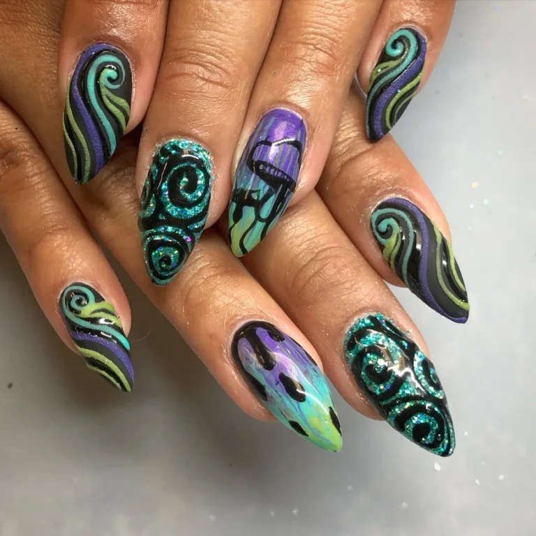 5. Twirling Glitters Hippie Edgy Nails