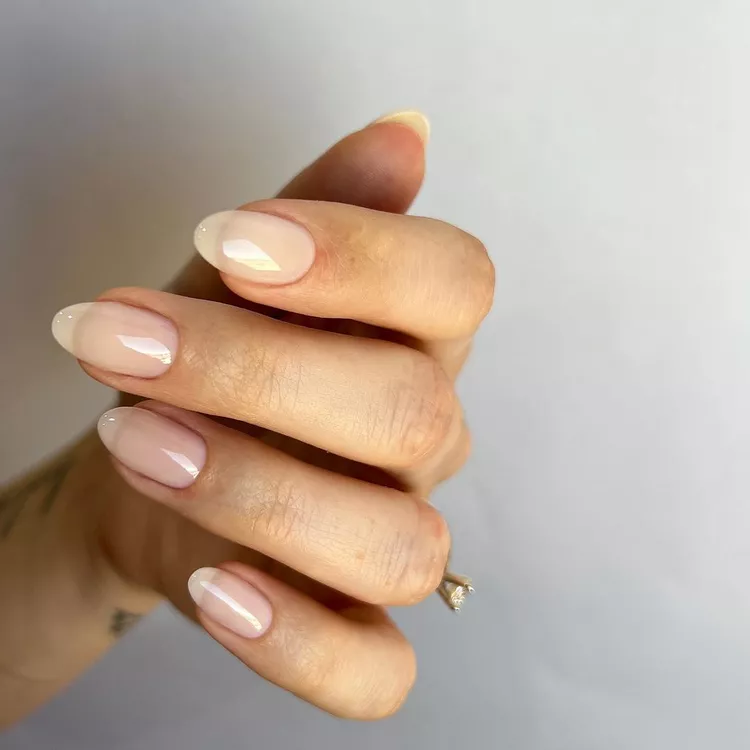 A high-gloss top layer over nude nails conveys a strong impression in the most understated manner. These natural nail styles emphasize shine and finish, instantly giving your hands a polished look. It’s sleek, classic, and effortlessly stylish.