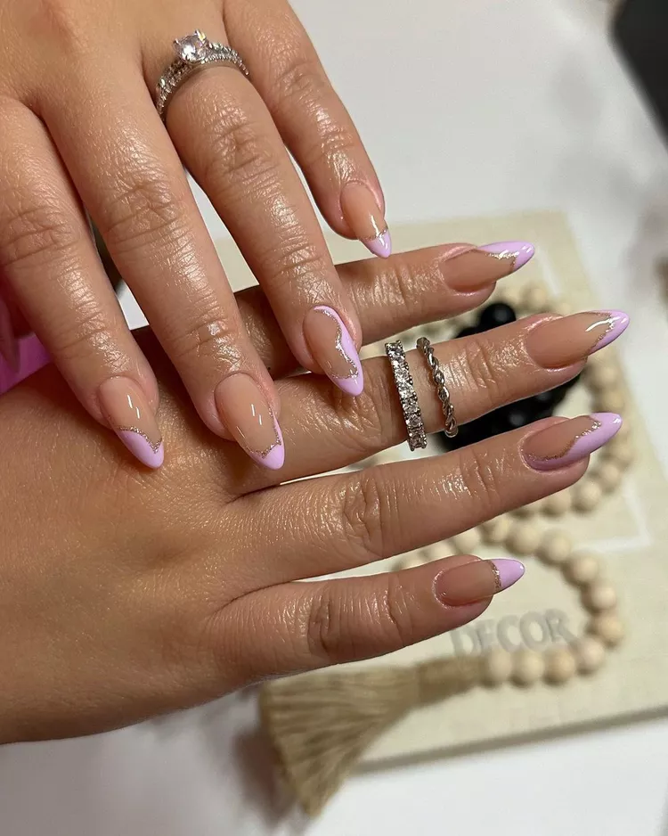 The glitter half-moon design introduces shimmer to the cuticle line while keeping the remainder of the nail neutral. Natural nail designs like this merge classic shapes with glamorous features for a harmonious appearance. It’s festive while remaining totally suitable for daily wear.