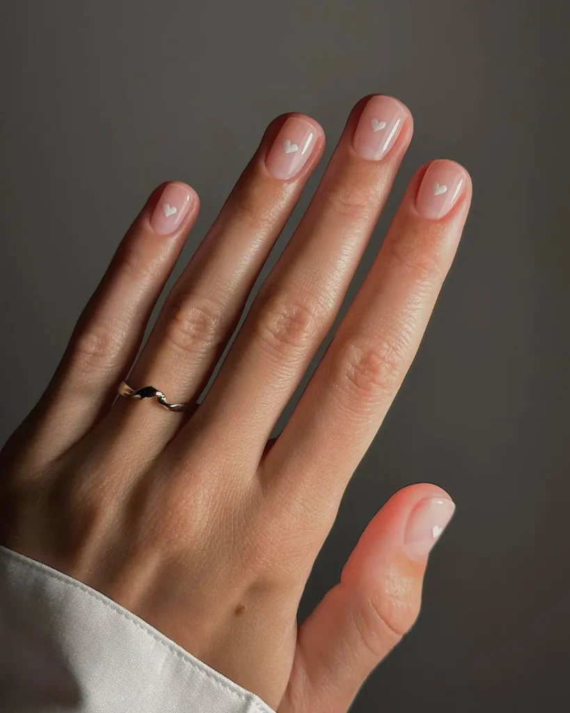 21. Short Natural Nails With Adorable Heart Designs