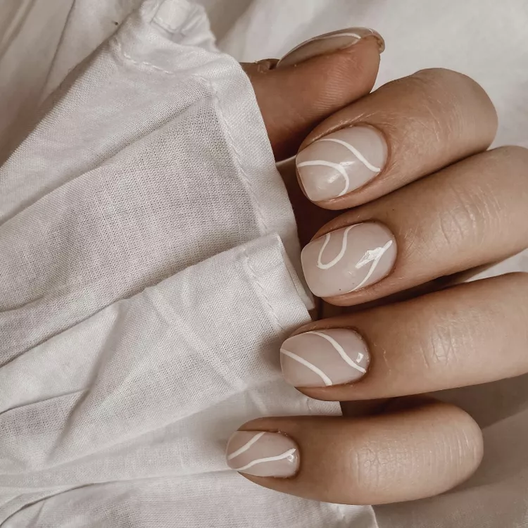 Delicate abstract lines layered over a nude base introduce a modern touch to natural nail designs. The artistic effect imparts movement and uniqueness while sustaining a minimalist manicure aesthetic. These nails are ideal for artistic souls who cherish understated details.