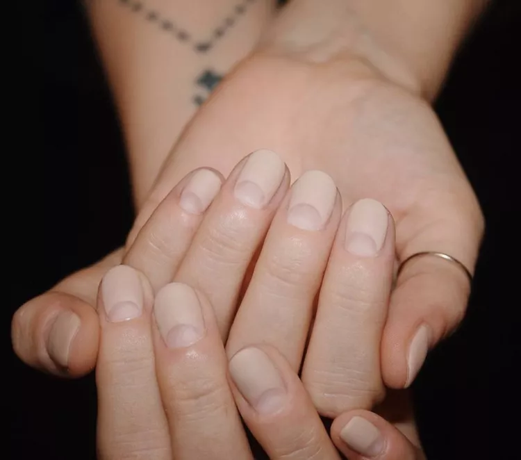 Matte nude nails are a fundamental component of the natural nail design realm. The soft, non-shiny finish presents a modern, chic appearance that pairs well with any outfit or setting. It’s the ultimate choice for effortless elegance and refined simplicity.