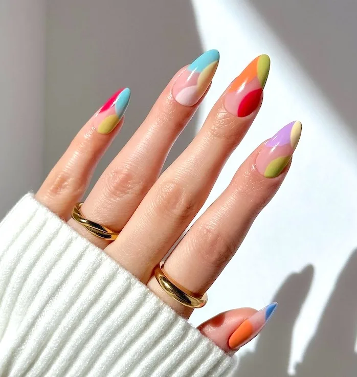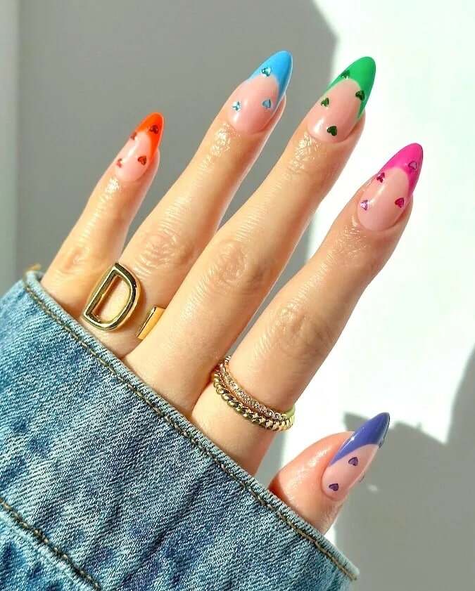 This manicure merges muted pastel shades with a striking opal effect, resulting in a chic, multi-hued appearance. As one of the leading April nail concepts, it embraces soft tones that mirror the fresh vitality of spring. The skittle effect adds a playful dimension, ensuring a fashionable and contemporary manicure.