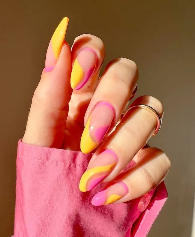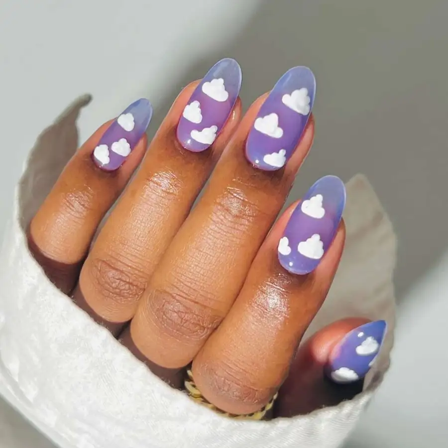 Deduced from nighttime skies, these April nail concepts encapsulate the whimsical tones of a spring sunset. The swirling designs create a gentle, blended appearance, imparting a warm, affectionate essence to your nails. Perfect for those who appreciate artistic and tranquil nail styles.
