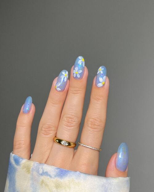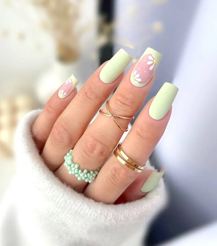 Simple yet graceful, these April nail ideas highlight the charm of minimalist daisy designs. The clean, delicate pattern provides a refreshing, understated appearance that’s suitable for any occasion. Whether paired with a neutral backdrop or colorful environment, this manicure radiates effortless charm.