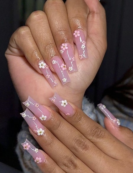 23. Soft Pink Floral Nail Art