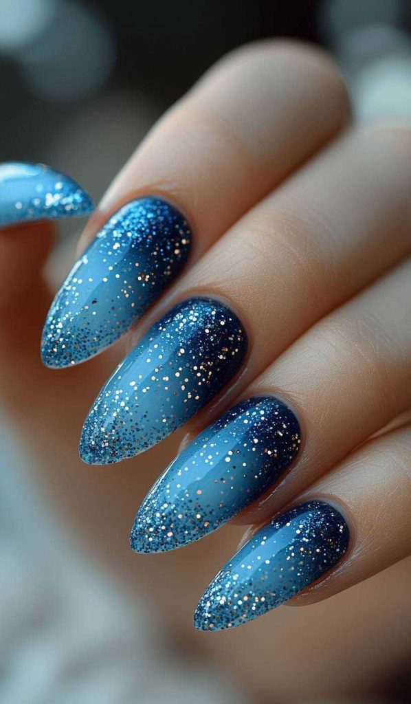 18. Blue Sparkle Gradient Nails