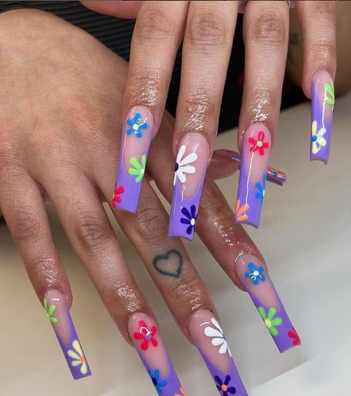 22. Coffin Nails with Floral Design