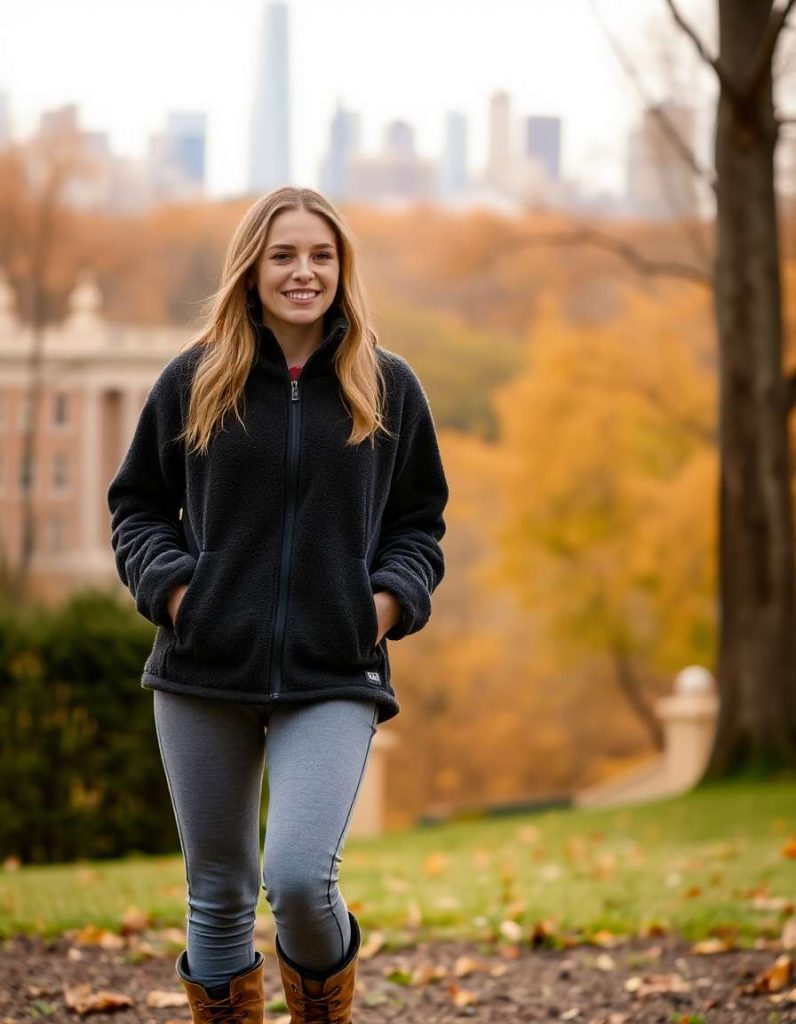 Fleece jackets are a warm addition to streetwear attire, offering comfort without sacrificing style. When styled with joggers or leggings, they craft practical yet chic outfits. This item is ideal for brisk urban days and leisurely outings.