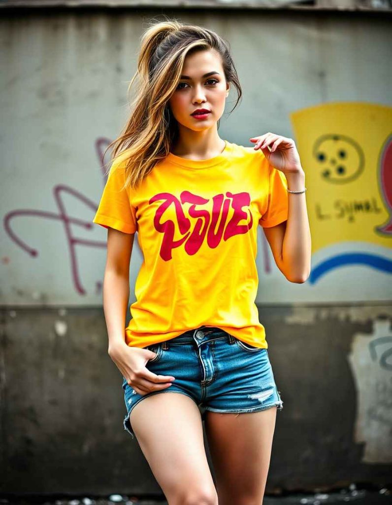 Graphic tees are a fundamental component of streetwear fashion, showcasing bold visuals that convey strong messages. When matched with denim shorts or jeans, they inject personality and imagination into any outfit. This pairing is ideal for leisurely outings, harmonizing comfort with a modern, urban vibe.