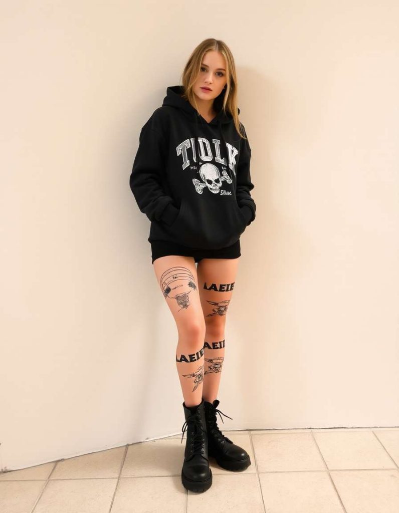 The graphic hoodie and combat boots pairing is a quintessential grunge ensemble, showcasing a defiant, edgy spirit. Whether you’re setting off for a day of exploration or simply chilling, this outfit strikes a perfect balance between comfort and style. Its bold aesthetic communicates volumes without needing any additional embellishments.
