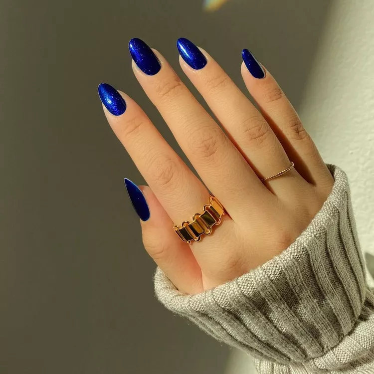 If you’re in search of a manicure that radiates sophistication and futuristic appeal, blue chrome nails are an exquisite selection. This trend fuses the cool charm of blue with a reflective chrome gloss, resulting in an enchanting effect.