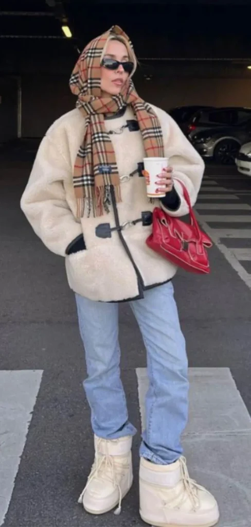 For a comfy, relaxed Burberry Outfit Ideas, combine a Burberry plaid scarf with an oversized sweater and jeans. This ensemble is ideal for brisk days, offering both comfort and flair. Conclude with ankle boots or casual sneakers to preserve a laid-back, everyday aesthetic.