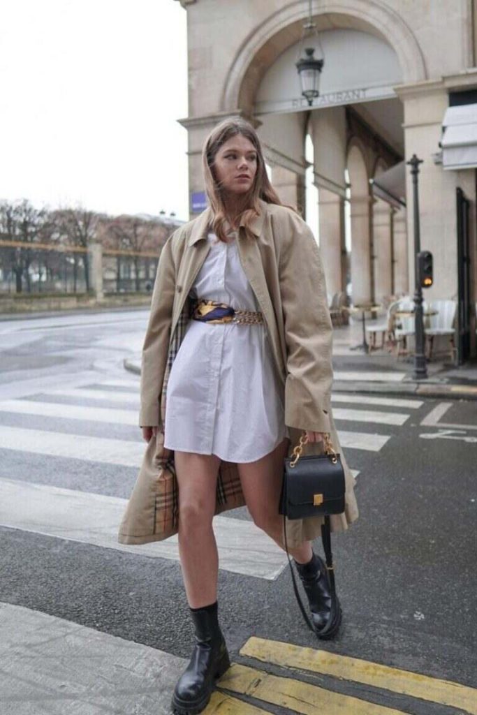 This Burberry Outfit Idea features a stylish shirt dress with a belted waist, offering a flattering form. Perfect for a day out or a casual evening, the Burberry check design makes a bold statement while the belted waist adds a fashionable element. Pair it with boots for a chic yet comfortable appearance.