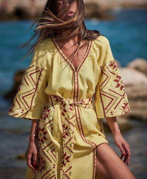 Distinct and attention-grabbing, these Yellow Dress Concepts feature embroidered dresses in vibrant yellow. Embrace intricate details and bohemian flair.