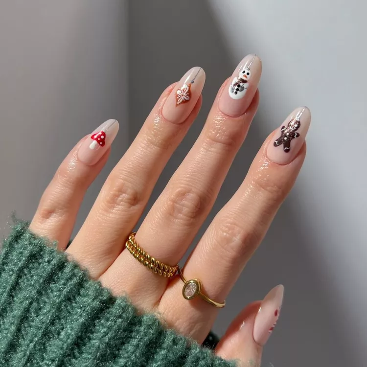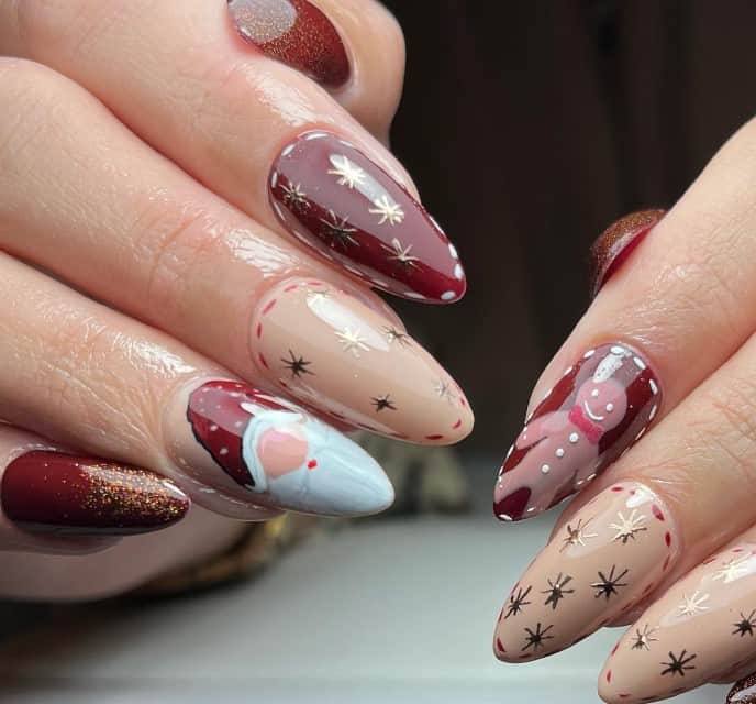 Santa and the gingerbread fellow December nails are playful and quirky, bringing holiday figures to existence on your fingertips. This whimsical design makes a bold impression, reflecting the essence of Christmas in every hand. Display your festive spirit with these seasonal December nails, ideal for any holiday occasion.
