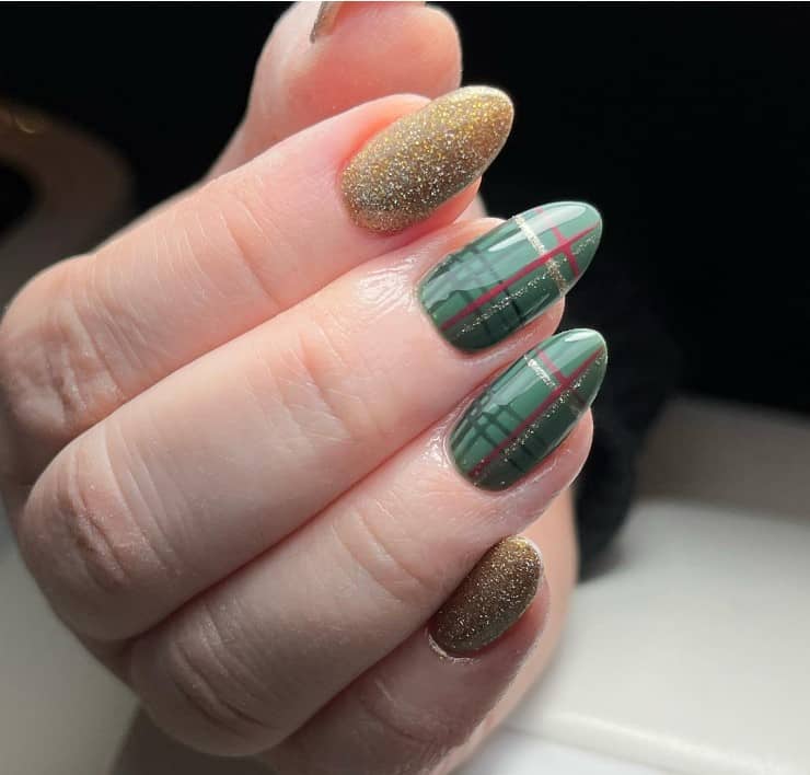 Emerald plaid and sparkle December nails combine age-old patterns with contemporary shimmer. The plaid motif adds a timeless element while the glitter lends a festive touch. This combination results in the ultimate December nail design for those aiming for style and holiday joy.