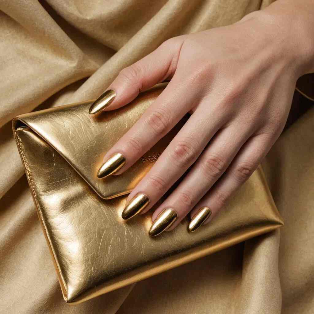 10. Golden Chrome Holly Nails