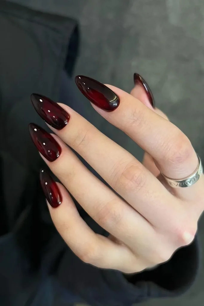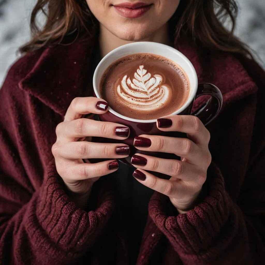 Cherry mocha nails harmonize rich red and deep brown shades to cultivate a warm, snug December appearance. This color pairing exudes luxury and festivity, providing a dash of refinement for holiday celebrations. Cherry mocha is the optimal choice for chic nails with a fashionable twist.