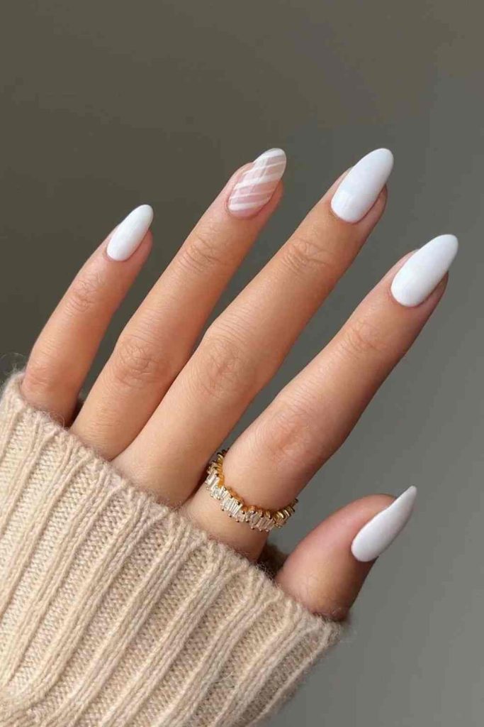A quintessential white manicure is a pristine, minimalist selection for your December nails. It reflects the charm of newly fallen snow and harmonizes beautifully with nearly any winter attire. With a hint of sparkle or a matte finish, a white manicure provides an elegant, fresh look to your holiday ensemble.