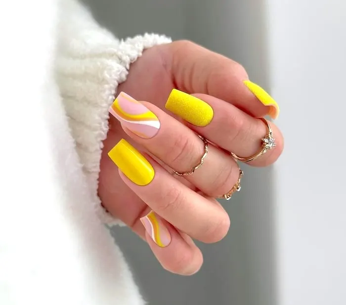 Embrace the essence of spring with May Nail Ideas showcasing designs inspired by marigolds. The rich yellow and orange shades capture the allure of blossoming flowers. This striking yet graceful style adds a hint of sunshine to your nails.