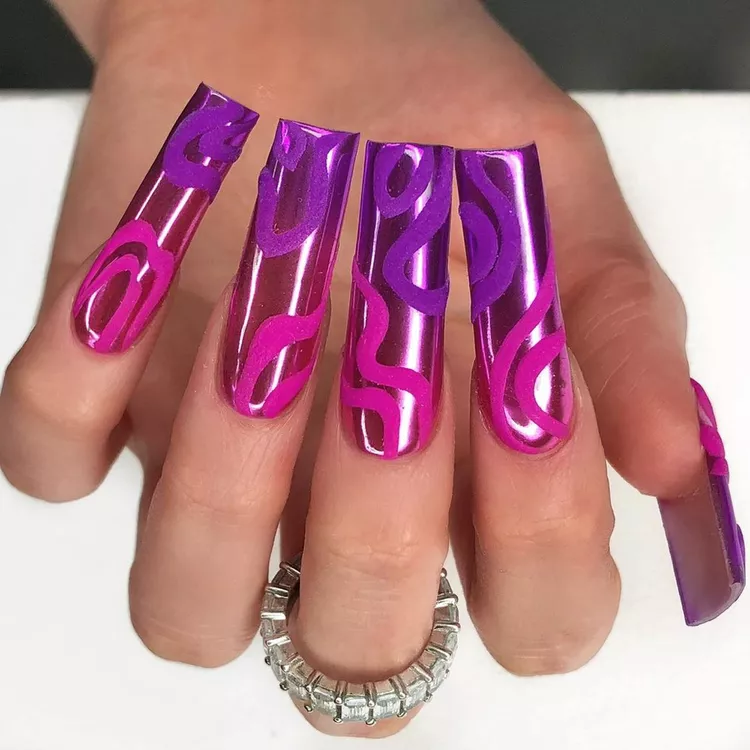 15. Pink and Purple Ombre Chrome with Matte Swirls