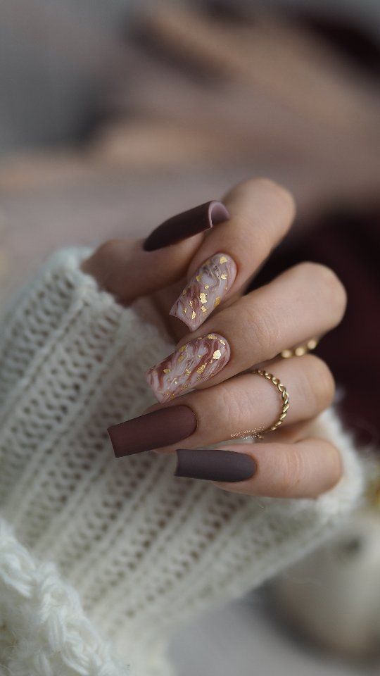 20. Brown Marble Acrylic Nails