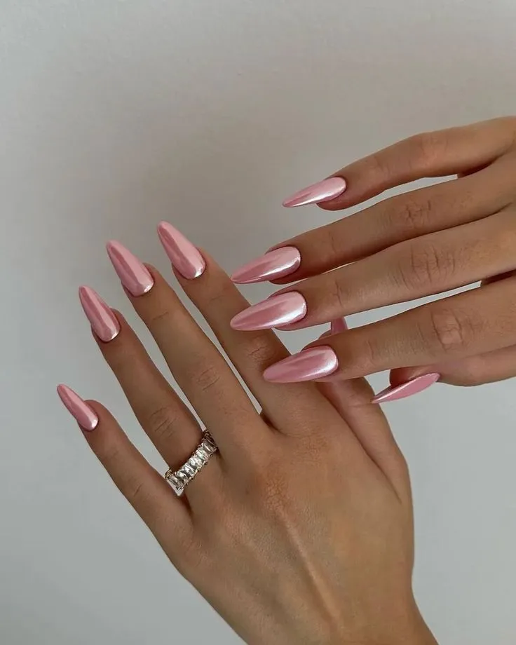 29. Pink Chrome Nails