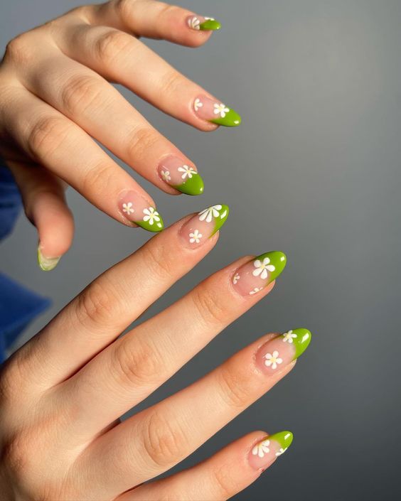 Embrace vibrant styles with May Nail Ideas showcasing lively green nails that offer a fresh and edgy essence. Colors like lime, emerald, and neon green make a bold statement and introduce a distinctive twist to traditional manicures. Whether solid or adorned with designs, these nails are essential for trendsetters.