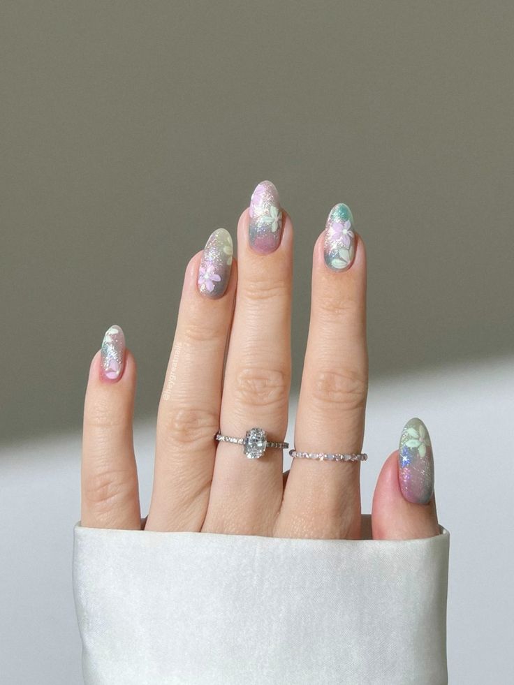Make an impression with May Nail Ideas featuring luminous florals in striking colors. Vivid floral designs on a pastel or nude background introduce a fresh and artistic flair. This manicure is fitting for those who admire eye-catching nail art.