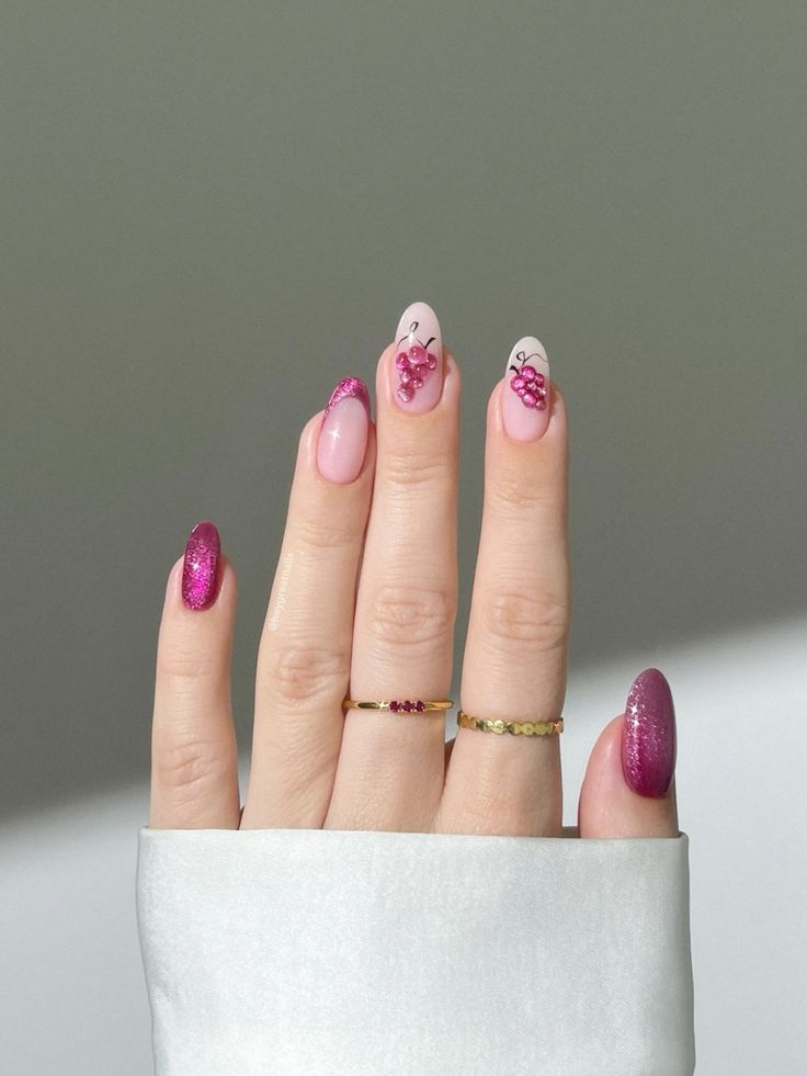 Infuse a fruity allure into your manicure with May Nail Ideas inspired by luscious grapes. Deep purple shades combined with tiny grape cluster accents create a playful yet sophisticated design. This manicure is perfect for a whimsical yet elegant spring appearance.